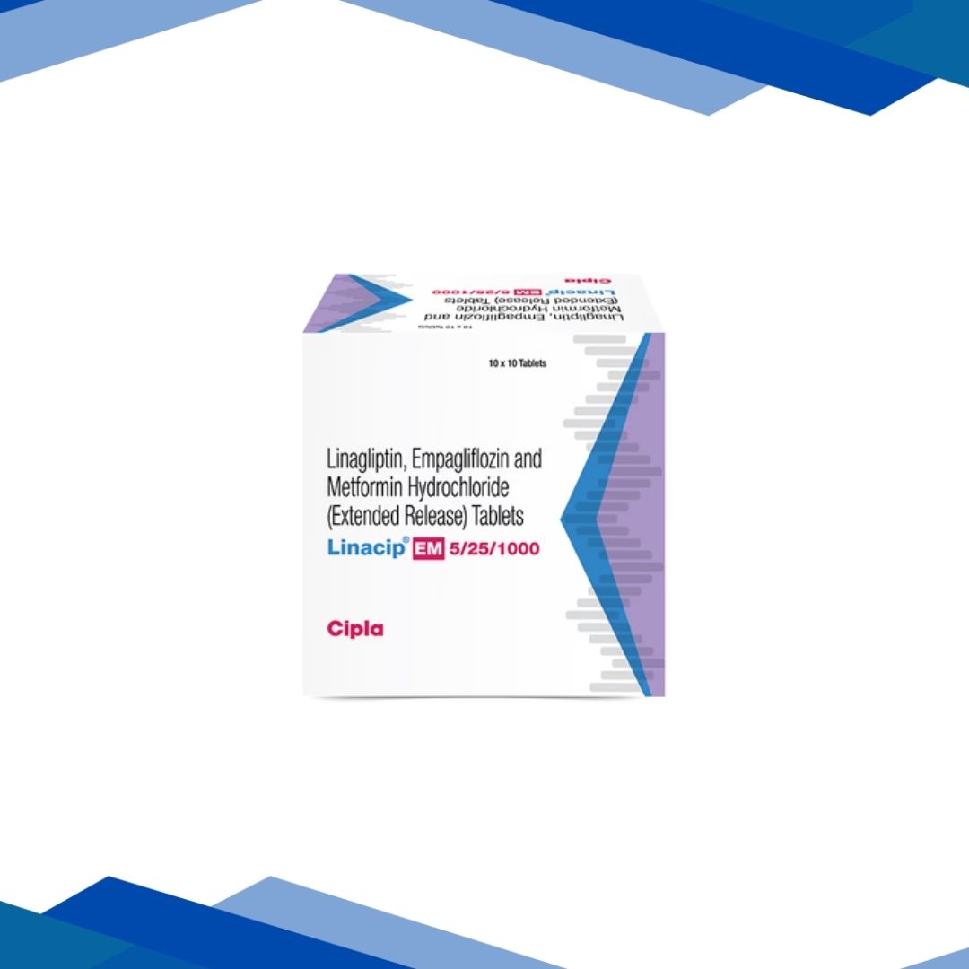 Linacip EM 5/25/1000 Tablet (strip of 10) is a triple-action antidiabetic medicine used in type 2 diabetes to control blood sugar by combining three complementary mechanisms. For more details kindly click on Medicine Salts below: