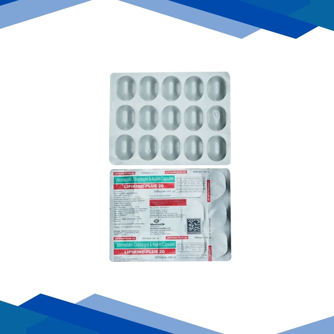 Lipikind-Plus 20 Capsule is a combination medicine used in the prevention of heart attack. It works by preventing clot formation in the blood vessels. It also helps to reduce increased cholesterol and triglyceride levels and promote cardiac health. For more details kindly click on Medicine Salts below: