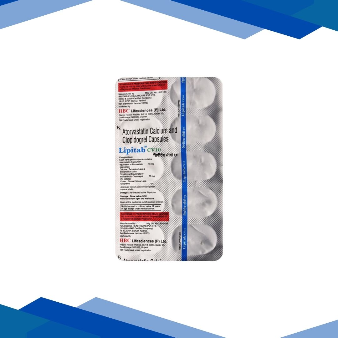LIPITAB CV 10 Capsule are used  to lower cholesterol and prevent blood clots. This combination helps reduce the risk of heart attack and stroke in patients with heart disease. For more details kindly click on Medicine Salts below: