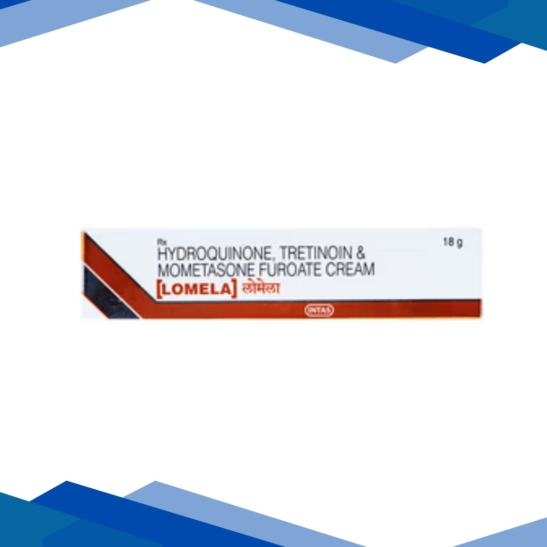 LOMELA CREAM is a combination of Hydroquinone, Tretinoin, Mometasone furoate which belongs to the group of medicines called Depigmenting agents, Retinoids and Corticosteroids respectively. It is used in adults for the management of moderate to severe melasma (dark spots on the skin) in association with sun-avoidance measures, like using sunscreens and wearing protective clothing. Melasma is one of the most frequently acquired hyperpigmentation (excess melanin production) disorders with symptoms such as symmetrical brown patches on sun exposed areas mainly on face.