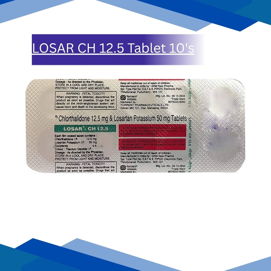 Losar CH 12.5 mg Tablet 10’s is a combination medicine used to effectively manage high blood pressure when a single medicine isn’t sufficient. It works by relaxing blood vessels and helping the body eliminate excess salt and water, reducing strain on the heart and improving blood flow. Regular use under medical supervision helps prevent heart attack, stroke, and kidney damage. For more details kindly click on Medicine Salts below: