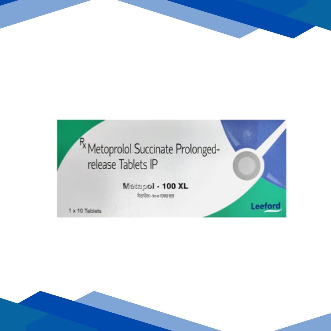 METAPOL XL 100 Tablet 10’s is an extended-release cardiovascular medicine used to treat high blood pressure (hypertension), angina (chest pain), and certain heart rhythm disorders. It helps lower heart rate and blood pressure, reducing the workload on the heart and improving overall heart function when taken as prescribed. For more details kindly click on Medicine Salts below:
