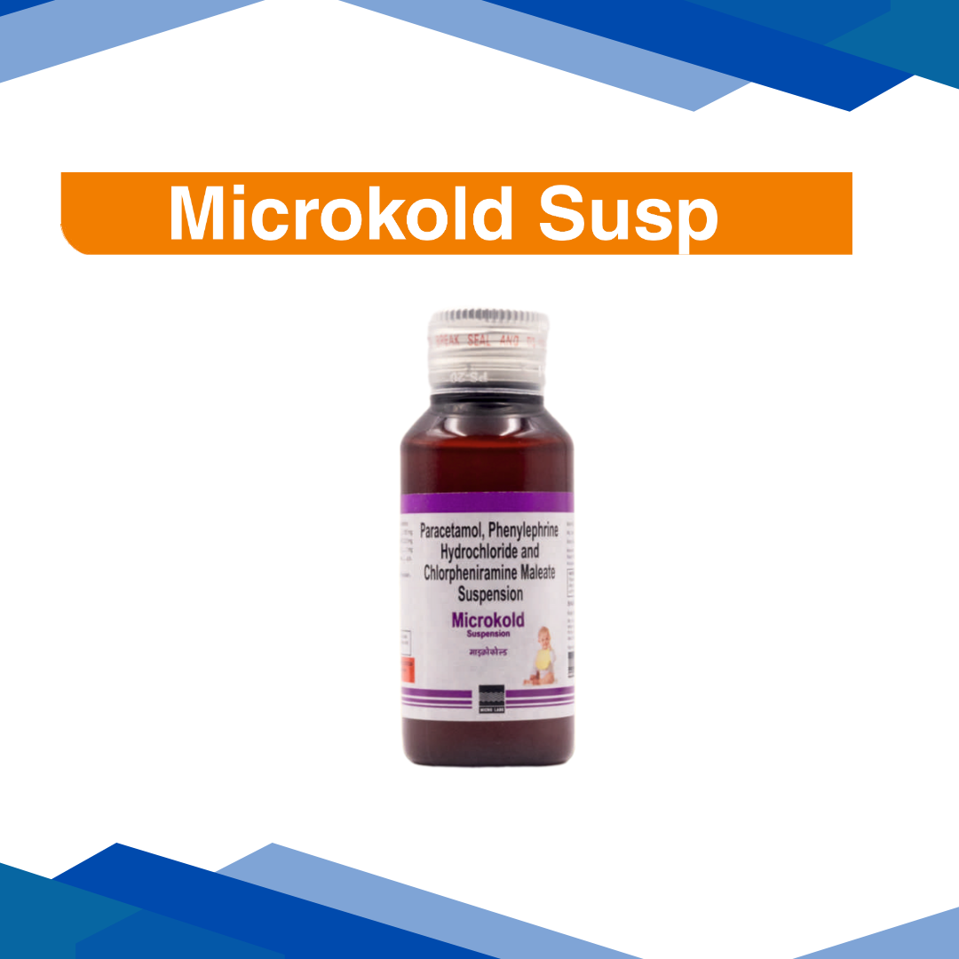 Microkold Suspension is a combination medicine used for temporary relief from cough, throat irritation, fever, sneezing & stuffed nose due to an allergy or cold.