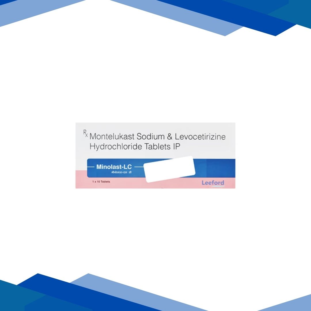 MINOLAST LC 10/5MG TABLET is used in the management of signs and symptoms of allergic rhinitis (sneezing, runny or stuffy nose, nasal itching, red, watery or itchy eyes, throat irritation, cough, headache and tiredness), chronic idiopathic urticaria (allergic skin reaction with red raised itchy bumps on skin) and bronchial asthma.