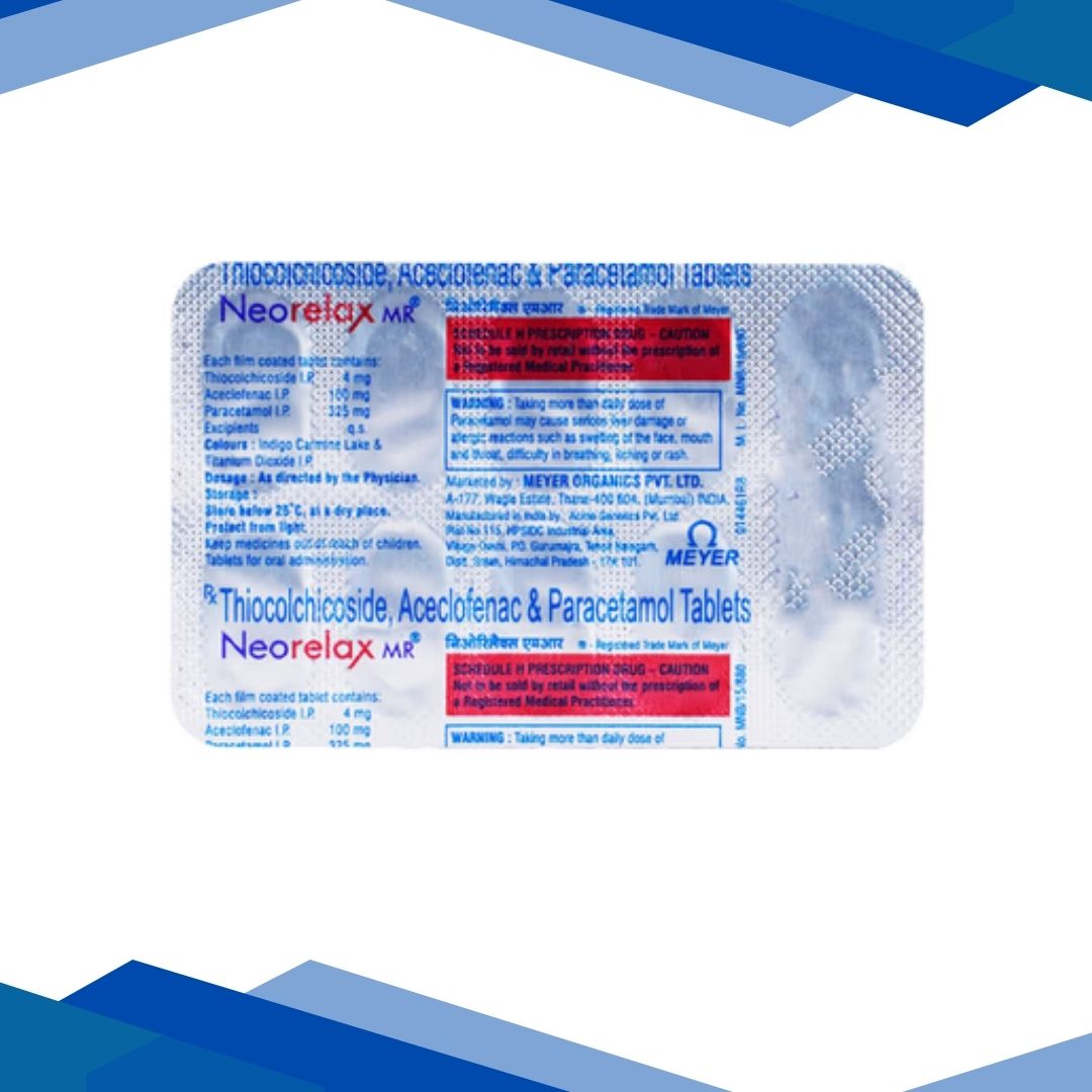 Neorelax MR Tablet is a combination medicine that helps in relieving muscular pain. It works by blocking the release of certain chemical messengers that cause pain, inflammation, and fever. This improves the movement of muscles and provides relief from pain and discomfort. For More detail kindly click on Medicine salts Below: