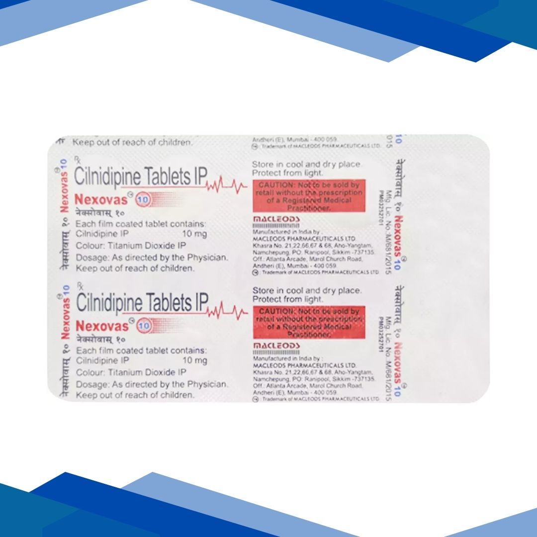 Nexovas 10 Tablet 15’s is used to treat high blood pressure (hypertension) by relaxing and widening blood vessels, which lowers the strain on the heart and improves blood flow, helping to control elevated blood pressure and reduce the risk of complications such as heart attack and stroke. For more details kindly click on Medicine Salts Below: