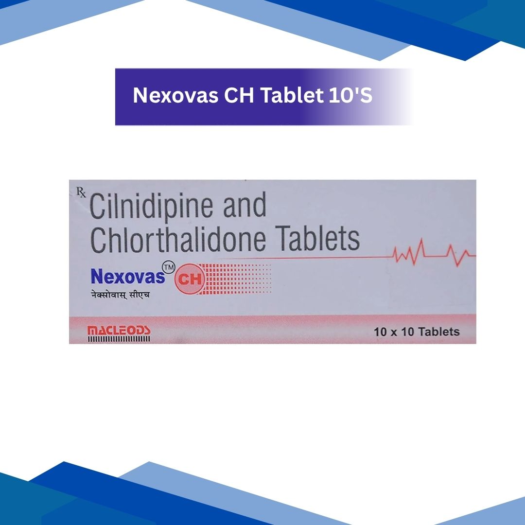 The Nexovas CH Tablet is a combination antihypertensive medication used to manage high blood pressure (hypertension). It combines two active ingredients—Cilnidipine and Chlorthalidone—that work together to relax blood vessels and eliminate excess fluid, effectively lowering blood pressure and reducing the risk of heart attacks and strokes. This tablet is typically prescribed when single-drug therapy is insufficient. For more details kindly click on Medicine Salts below: