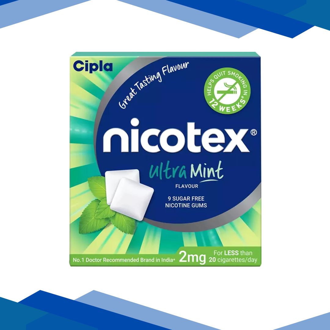 Nicotex 2 mg Sugar Free Ultra Mint Nicotine Gums 9’s are sugar‑free nicotine replacement therapy chewing gums used to help reduce cravings and withdrawal symptoms associated with quitting smoking or tobacco use by providing a controlled dose of nicotine in a refreshing ultra mint flavour as part of a complete smoking cessation strategy. For more details kindly click on Medicine Salts below: