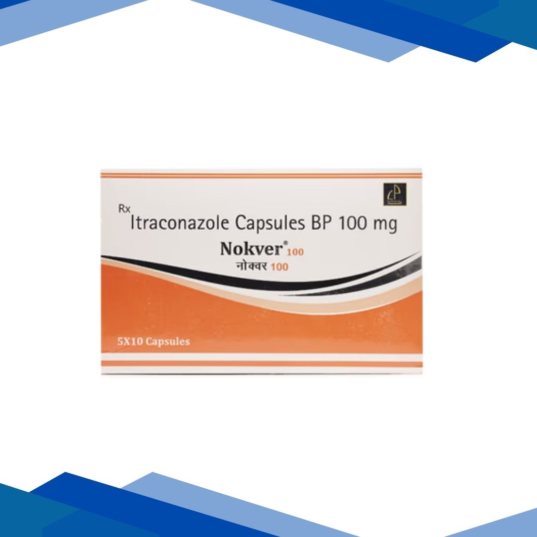 Nokver 100mg Capsule is an antifungal medicine used to treat various fungal infections of the skin, mouth, throat, lungs, and nails by stopping the growth of infection-causing fungi in the body. For more details kindly click on Medicine Salts below: