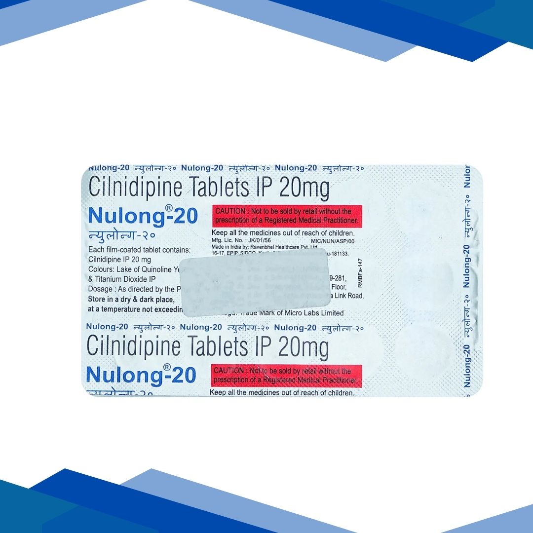 NULONG 20 Tablet 15’s is used to treat high blood pressure by relaxing and widening blood vessels, which helps lower elevated blood pressure and supports better heart health. For more details click on the Medicine Salts below: