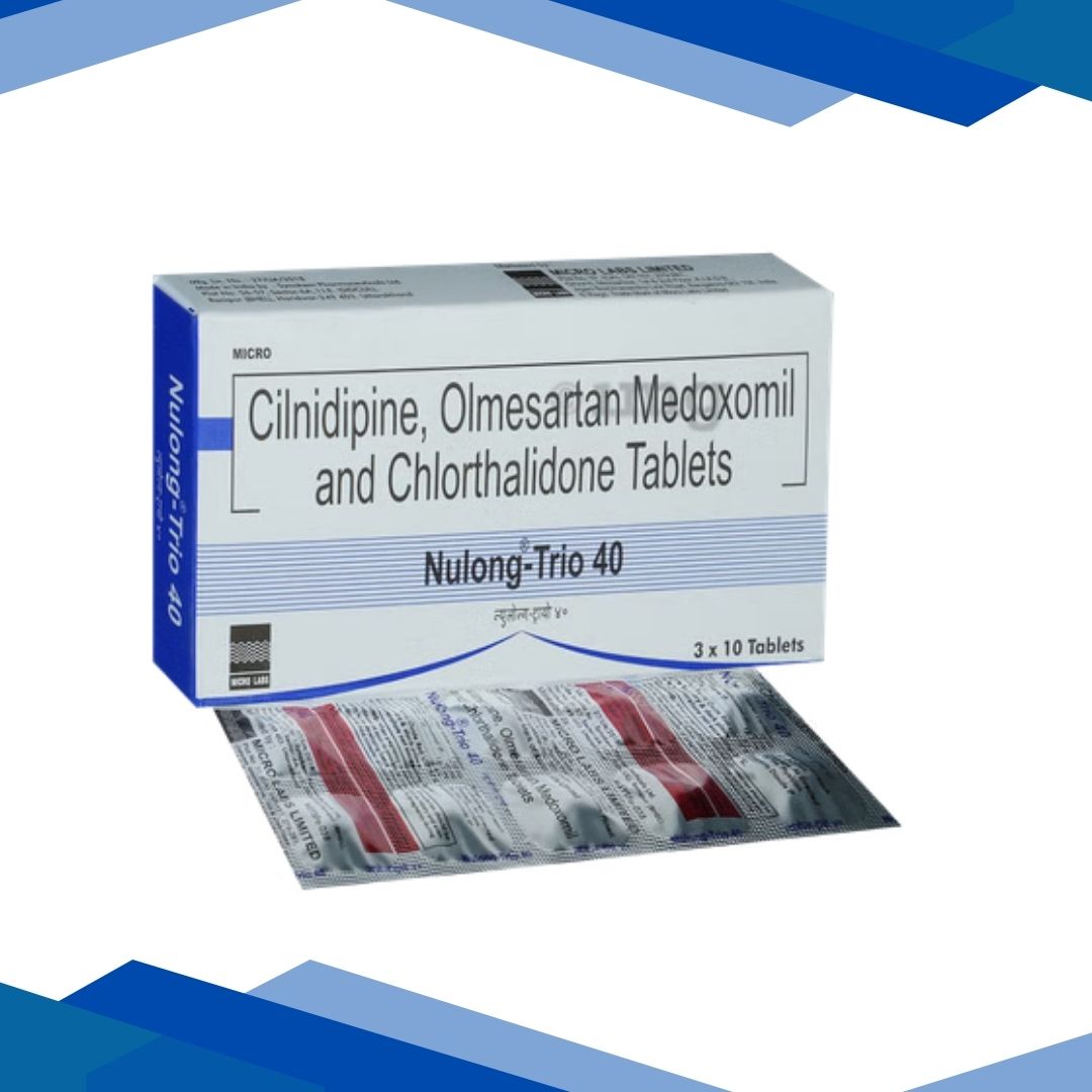Nulong‑Trio 40 Tablet 10’s is used for the treatment and management of high blood pressure (hypertension). This combination medicine works by relaxing and widening blood vessels, blocking hormonal signals that tighten arteries, and helping remove excess fluid from the body to improve blood circulation and effectively lower elevated blood pressure, which helps reduce the risk of cardiovascular complications such as heart attack and stroke when taken as prescribed. For more details click on the Medicine Salts below: