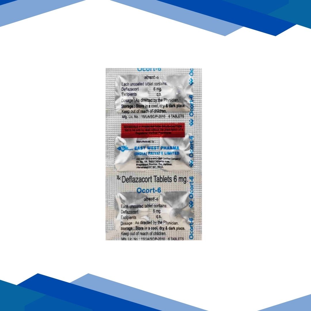 OCORT 6 TABLET contains Deflazacort which belongs to the group of medicines called Anti-Inflammatory and Immunomodulator Drugs. It is used to manage inflammation in asthma (inflamed airways), arthritis (pain and inflammation in the joints) and allergies.