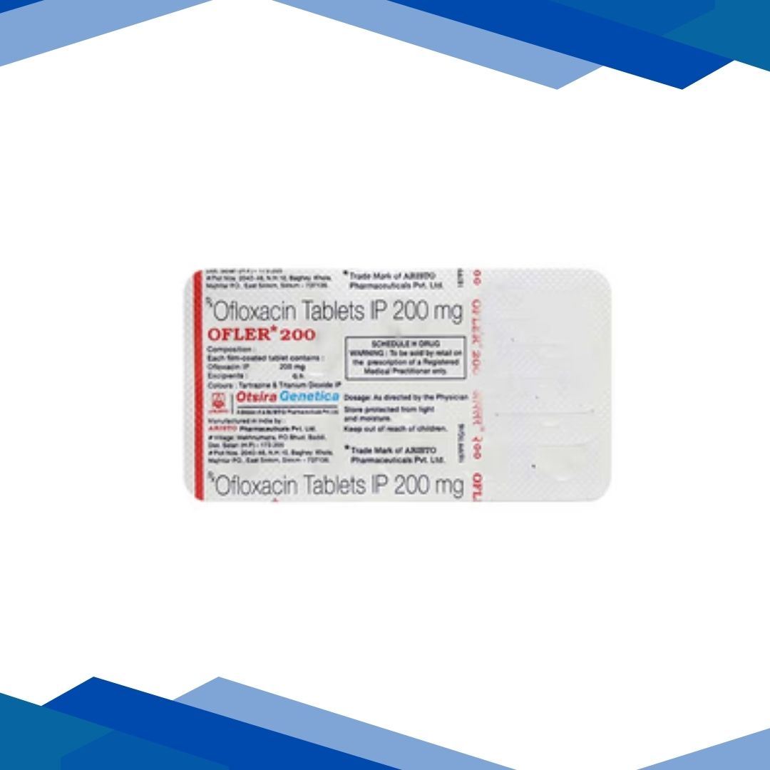 Ofler 200mg Tablet is an antibiotic that helps treat bacterial infections. It is used in treating infections of the urinary tract, nose, throat, skin and soft tissues, and lungs (pneumonia). It cures the infection by stopping the further growth of the causative bacteria.