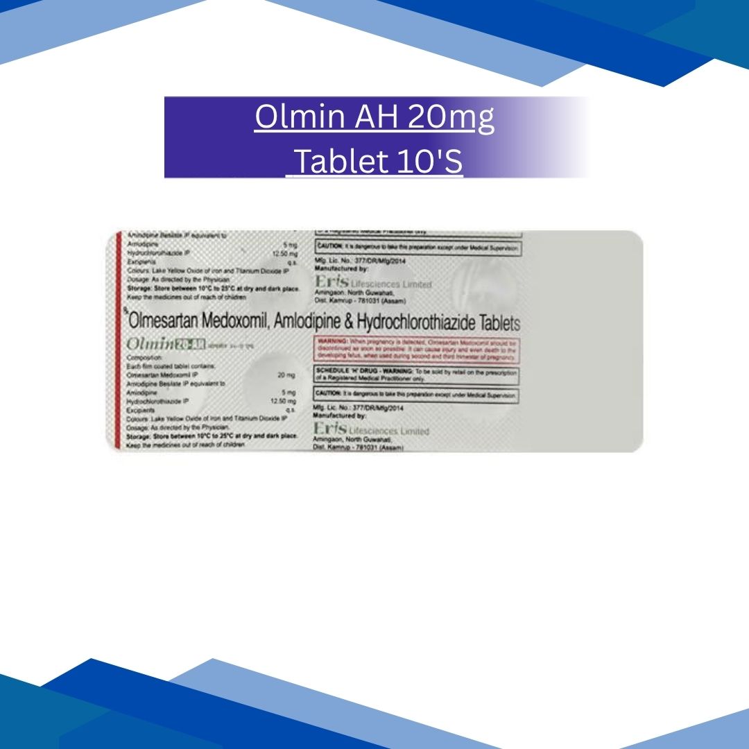 Olmin AH 20 mg Tablet 10’s is a prescription medicine used to treat high blood pressure by combining three agents that relax blood vessels and help the body remove excess fluid. For more details kindly click on Medicine Salts below: