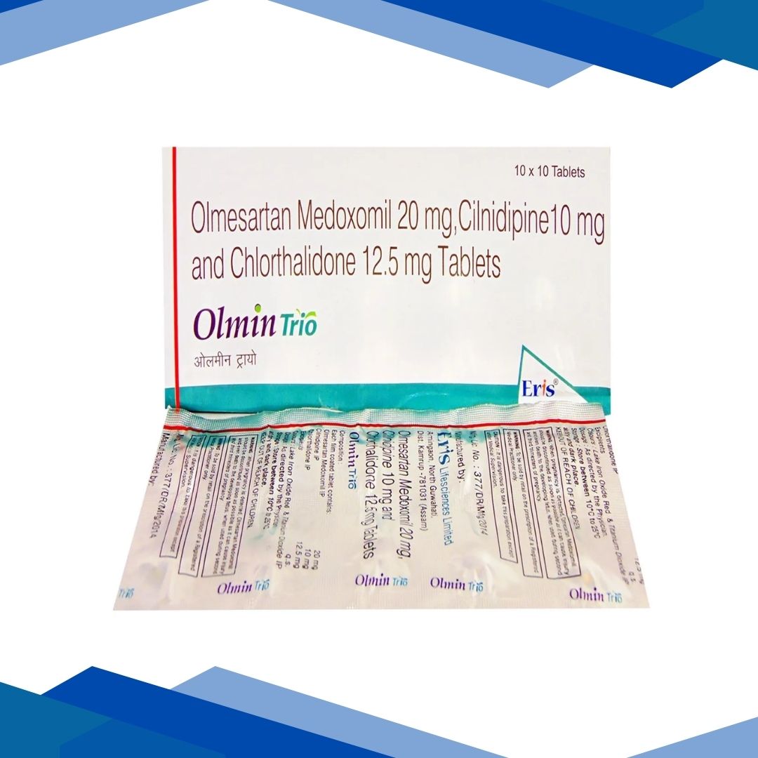 Olmin Trio 20 Tablet 15’s is used to treat high blood pressure by relaxing blood vessels and removing excess fluid, helping maintain better blood pressure control and reduce heart-related risks. For more details click on the Medicine Salts below: