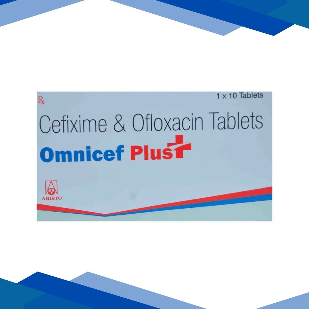 OMNICEF PLUS TABLET is a combination of Cefixime and ofloxacin, which belongs to the group of medicines called Antibiotics. It is used in adults to manage typhoid fever (an infection caused by Salmonella typhi, accompanied by high fever, stomach pain, headache, and diarrhea).