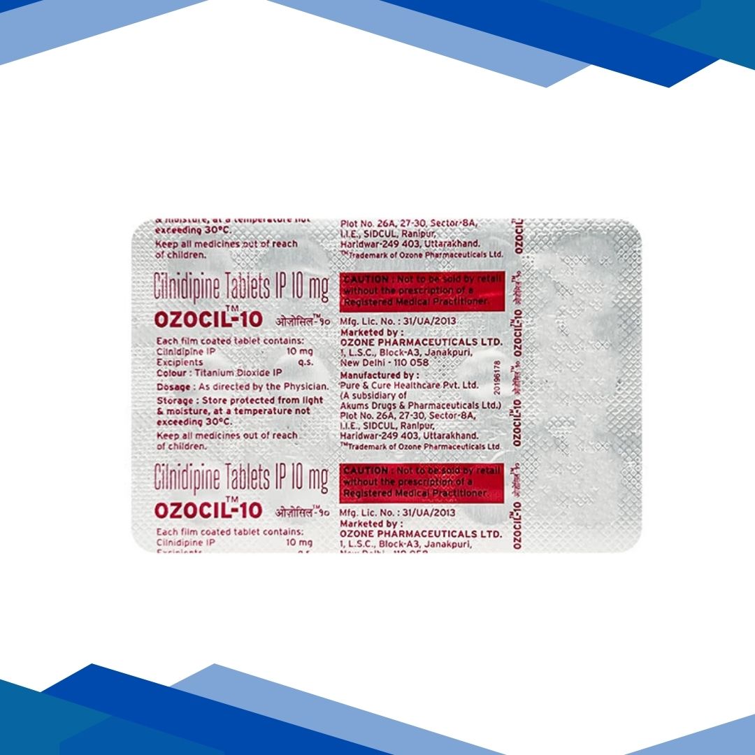 Ozocil 10mg Tablet is used for the treatment and management of high blood pressure (hypertension). It works by relaxing and widening blood vessels to improve blood flow and help lower elevated blood pressure, which supports heart health and reduces the risk of stroke and heart attack. For more details click on the Medicine Salts below: