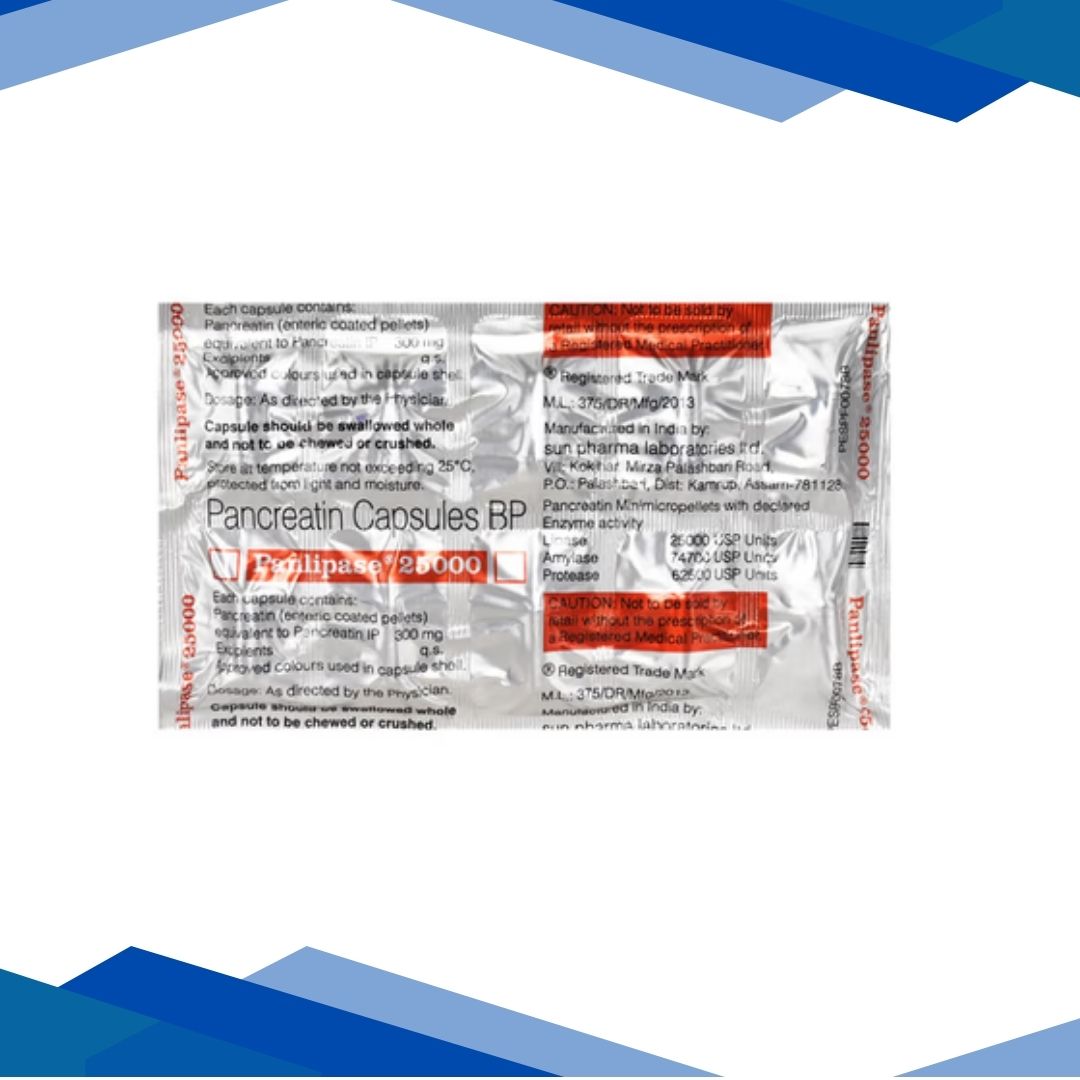 Panlipase 25000 Capsule is used to treat pancreatic enzyme deficiency, helping your body break down fats, proteins, and carbohydrates when the pancreas does not produce enough digestive enzymes. For more details kindly click on Medicine Salts below: