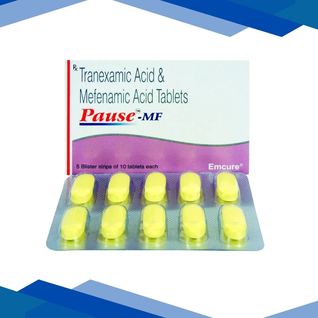 PAUSE MF TABLET contains a combination of Mefenamic acid and Tranexamic acid, which belongs to the group of medicines called Non-Steroidal Anti-inflammatory Drugs (NSAIDs) and antifibrinolytics.
