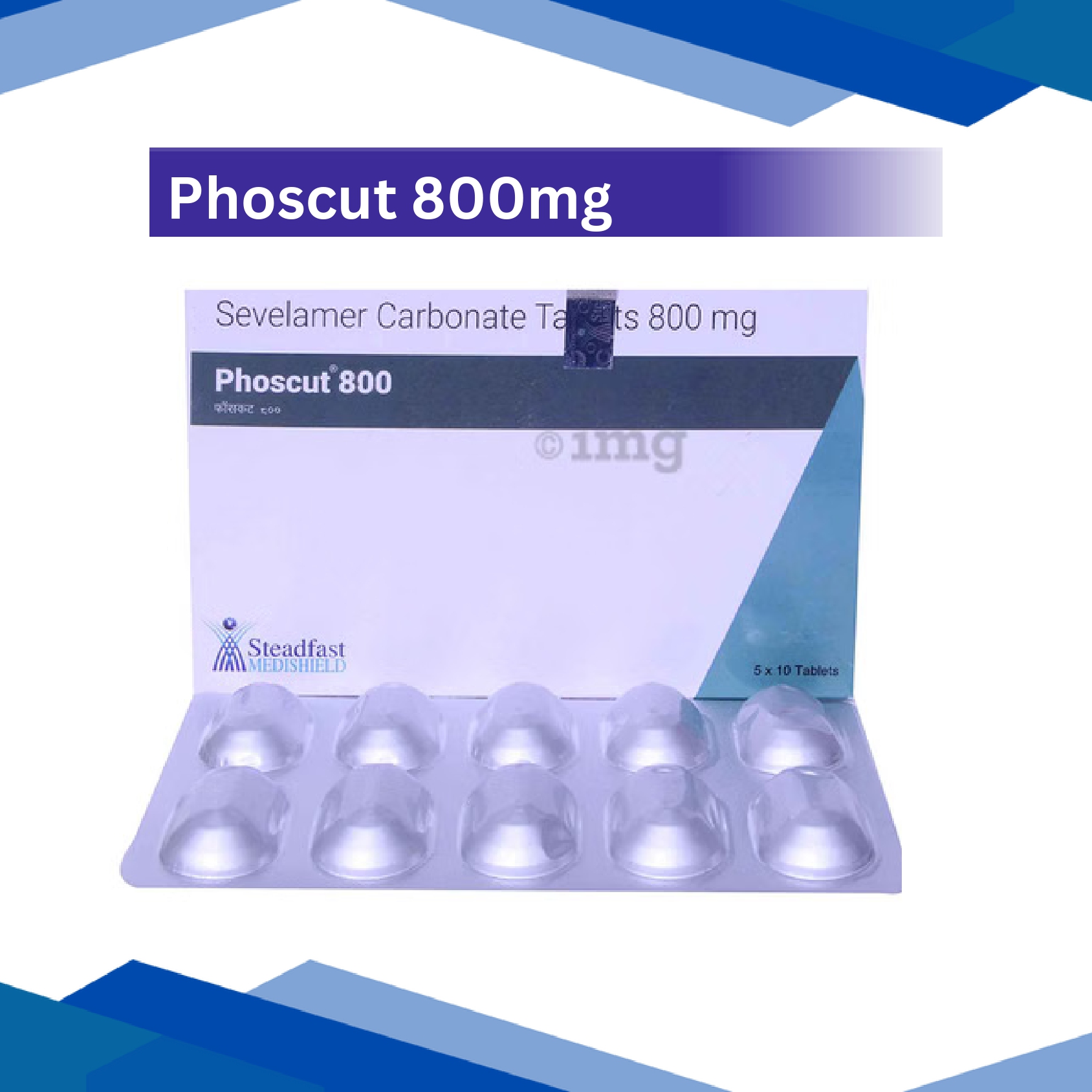 Phoscut 800 mg Tablet contains sevelamer (sevelamer carbonate), which is a non‑metal, non‑calcium phosphate binder. It’s used to treat hyperphosphatemia (high phosphate levels in the blood), especially in patients with chronic kidney disease who are on dialysis. It works by binding dietary phosphate in the gut, reducing its absorption. For more details kindly click on Medicine Salts below: