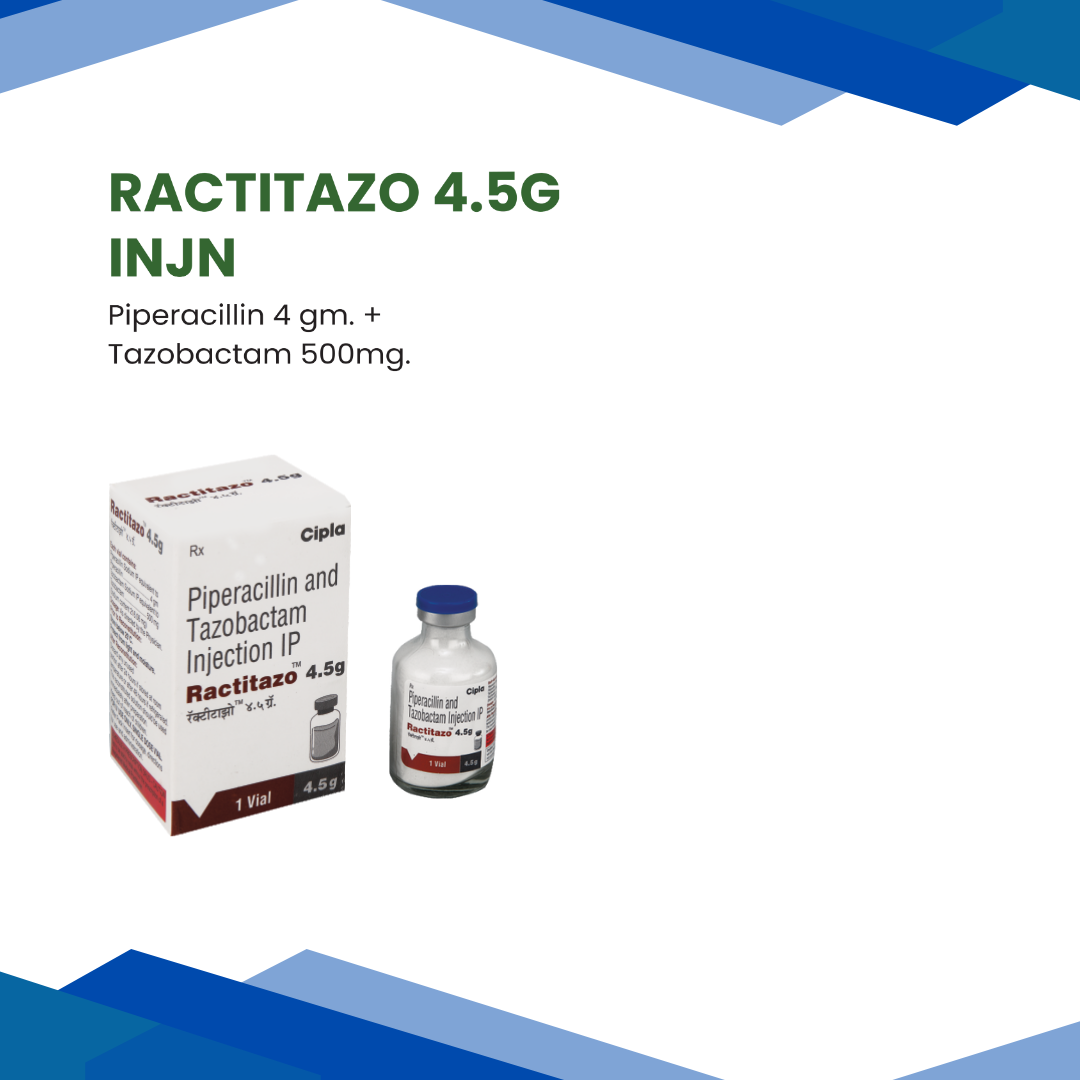 Ractitazo 4.5g  is used to treat various hospital-acquired and ventilator-associated pneumonia, urinary tract infections, intra-abdominal infections, skin and soft tissue infections (like diabetic foot infections) and uterine infections. Bacterial infection occurs when harmful bacteria grow in the body and causes illness.