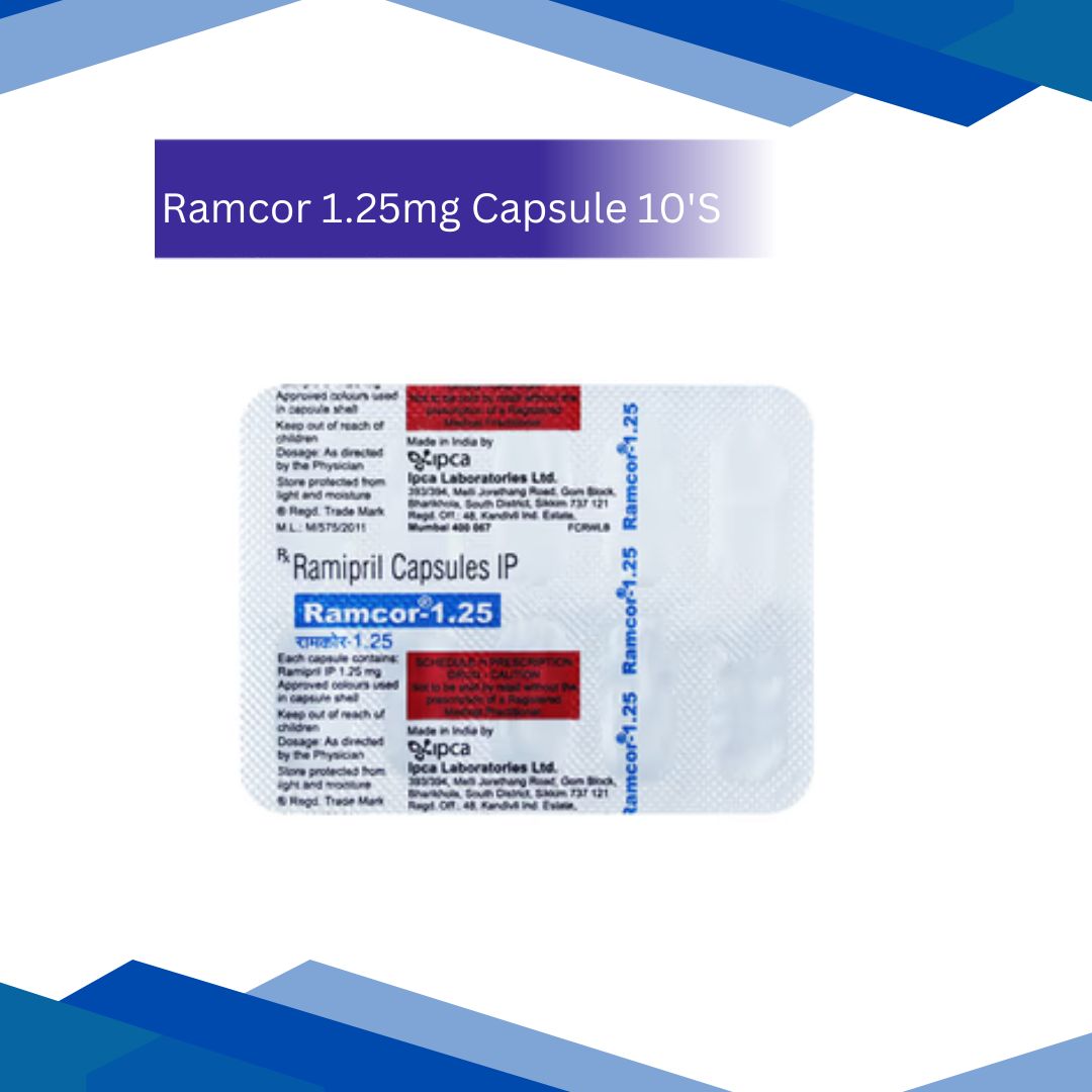 Ramcor 1.25 mg Capsules 10’s is used to treat mild to moderate high blood pressure and certain heart conditions. It helps relax the blood vessels, making it easier for the heart to pump blood effectively while reducing the risk of future cardiovascular problems. For more details kindly click on Medicine Salts below: