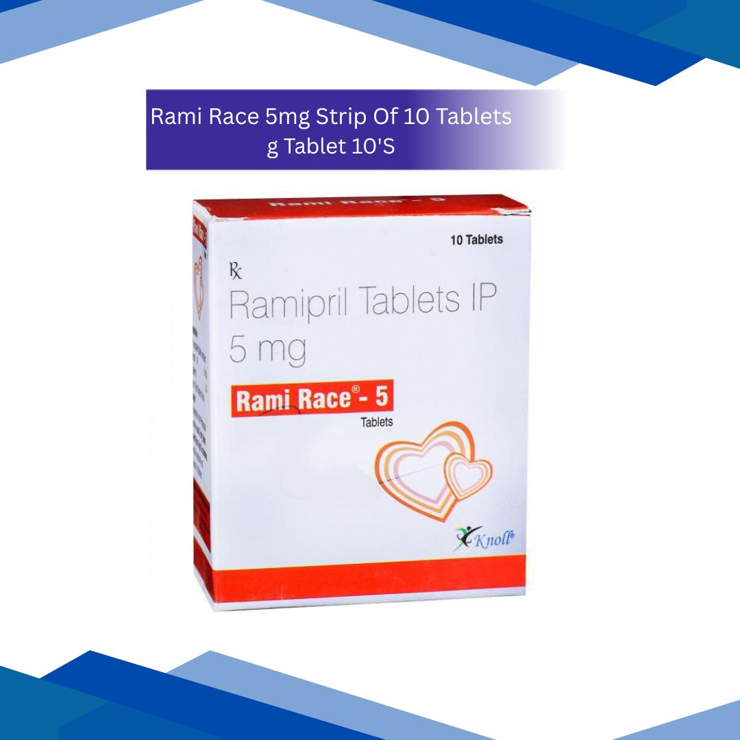 Rami Race 5 Tablet is widely used to treat high blood pressure and heart failure and may even be prescribed after a heart attack. It also lowers the chances of having a heart attack or stroke.
