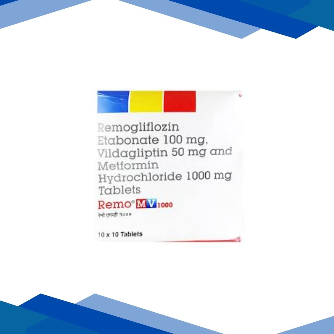Remo MV 1000 Tablet is an anti‑diabetic medicine used to manage type 2 diabetes mellitus by helping control blood sugar levels through multiple mechanisms: removing excess glucose through urine, reducing glucose production in the liver, increasing insulin secretion, and improving insulin sensitivity. For more details kindly click on Medicine Salts below: