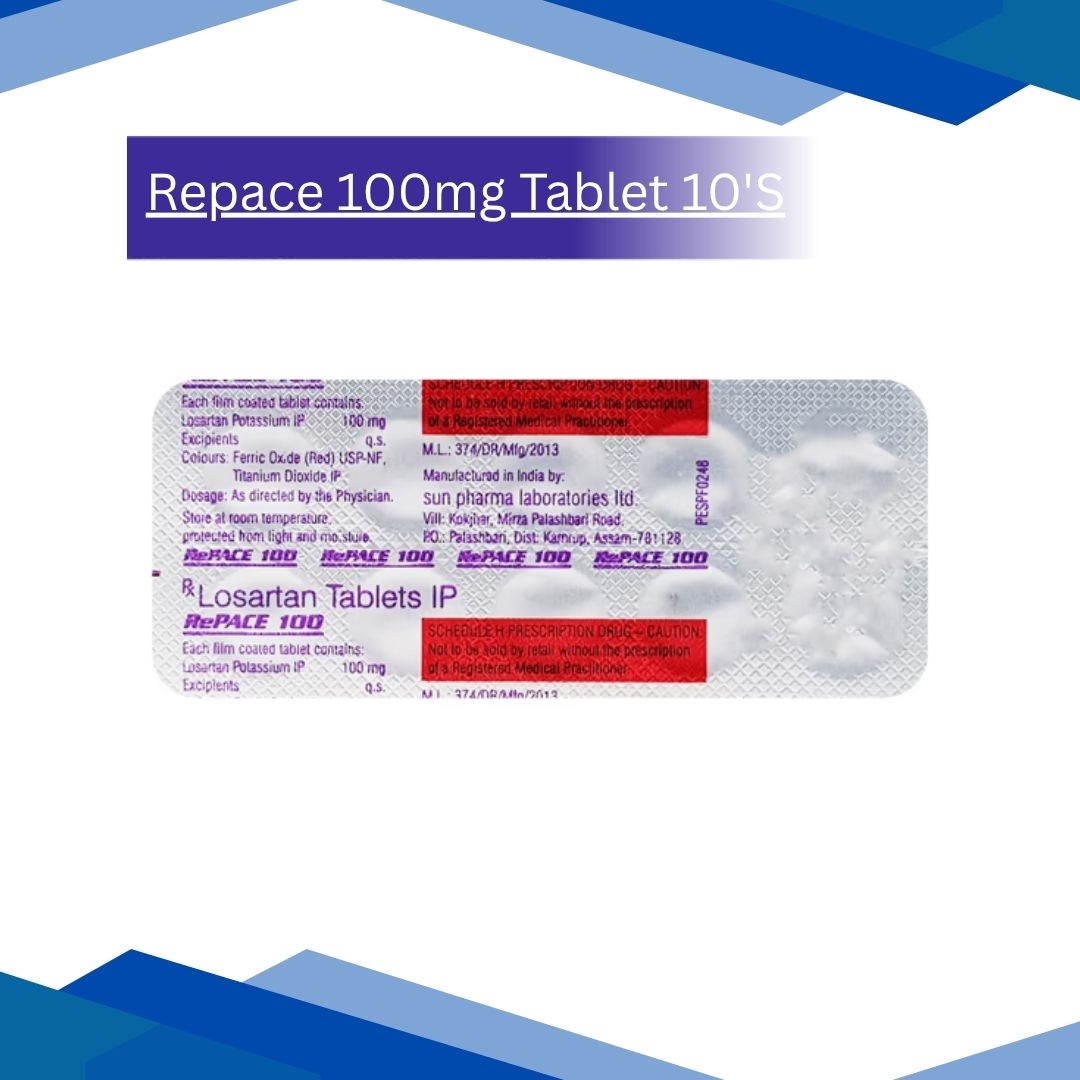 Repace 100 mg Tablet 10’s is prescribed to manage high blood pressure and protect vital organs like the heart and kidneys. By relaxing and widening blood vessels, it helps blood circulate more easily, reducing the risk of heart attacks, strokes, and kidney issues over time. It’s an important part of long-term heart care when taken as advised by your doctor. For more details kindly click on Medicine Salts below: