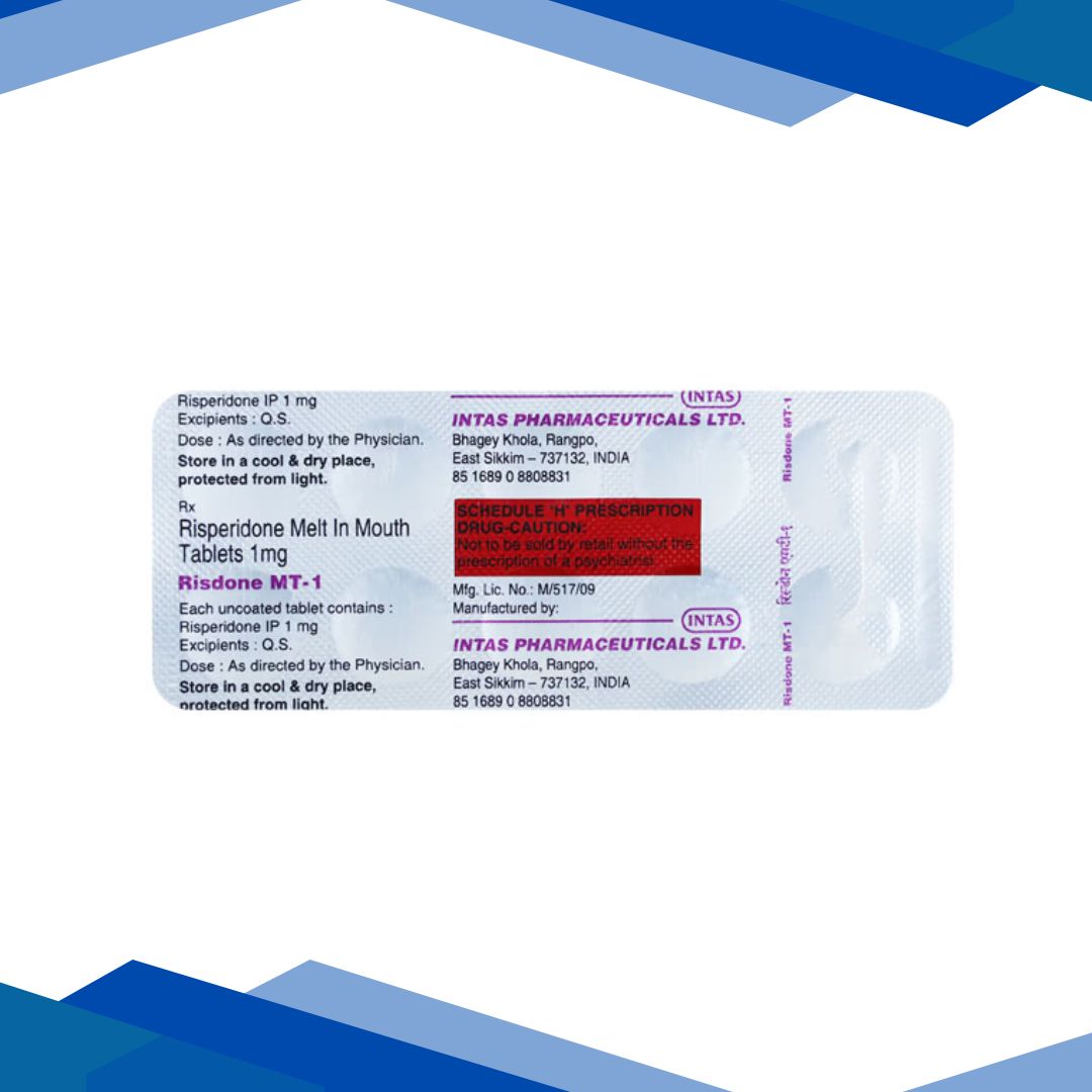Risdone MT 1mg Tablet 10’S is an orally disintegrating antipsychotic medicine used to treat schizophrenia, bipolar disorder, and other related mental health conditions. It helps improve mood, behavior, and thinking by balancing certain chemicals in the brain and is especially useful for patients who have difficulty swallowing tablets. For more details kindly click on Medicine Salts below: