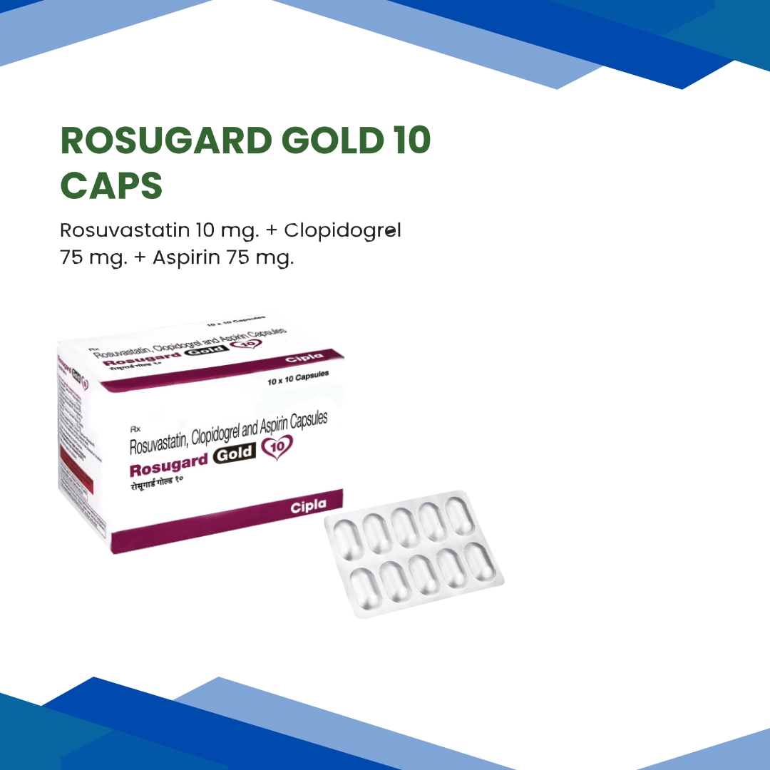 Rosugard Gold 10 is used to prevent heart attacks and strokes. It is a combination of medicine to reduce cholesterol levels, prevent blood clot formation, and improve heart health.