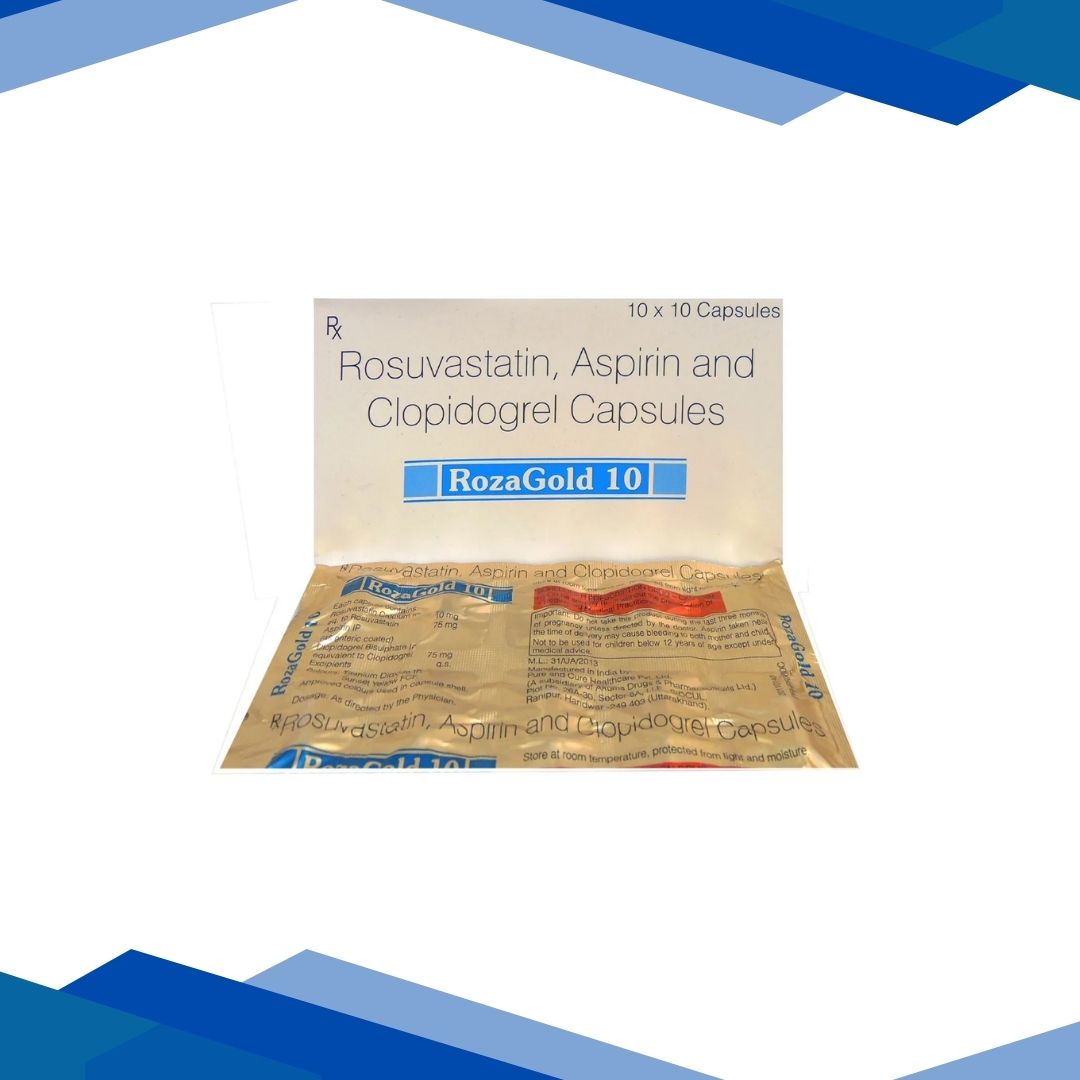 Rozagold 10 Capsule is used in the treatment of heart attack (a condition when the blood flow to the heart is blocked), myocardial infarction (blockage of the blood to muscles of the heart), angina (chest pain), and stroke. Symptoms of a heart attack include chest pain, tightness in the chest, and pain in the neck, arm, or back. For more details kindly click on Medicines Salts Below: