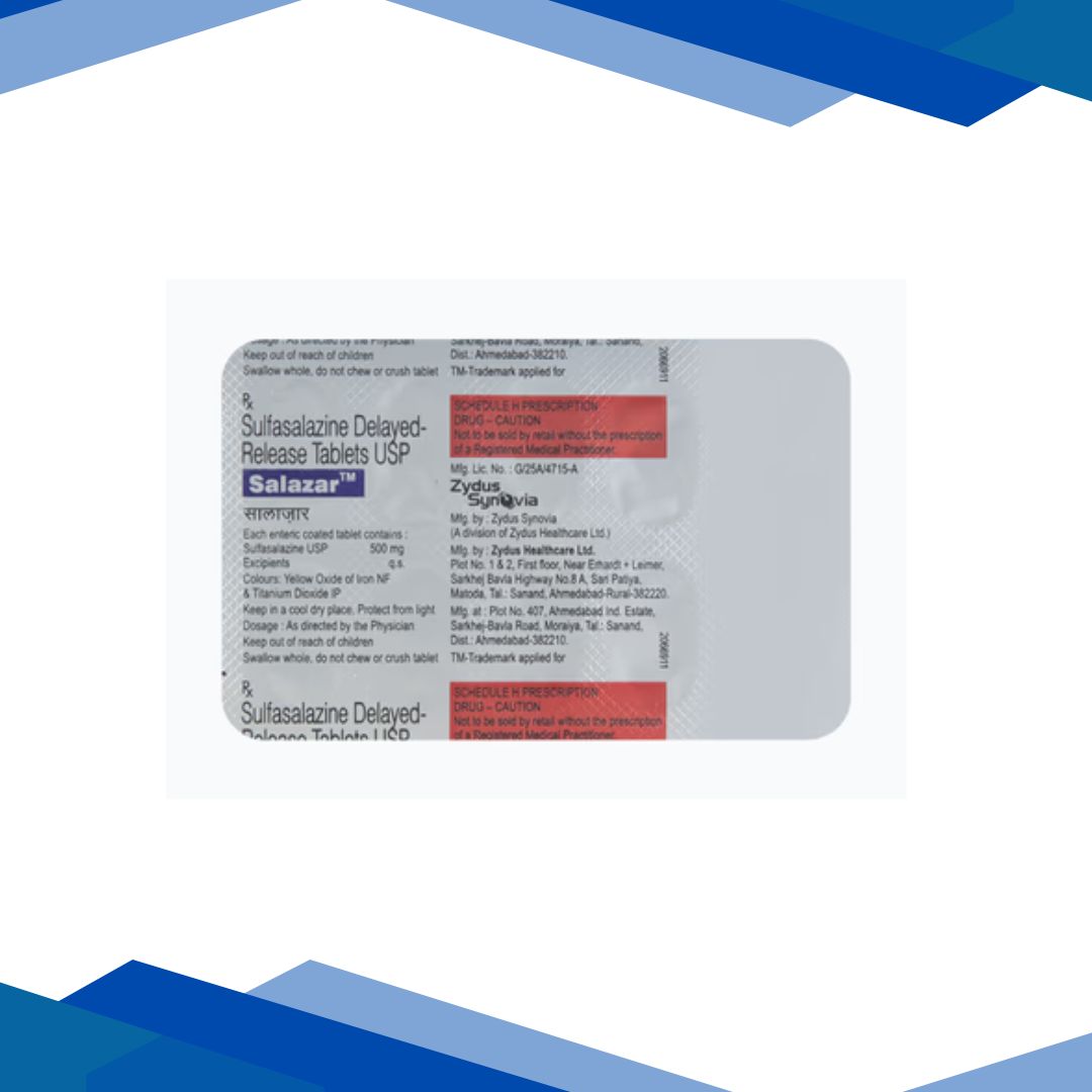 SALAZAR TABLET contains Sulfasalazine which belongs to the group of medicines called Aminosalicylates. It is used to manage inflammatory bowel disease such as Ulcerative Colitis, Crohn’s disease and rheumatoid arthritis.