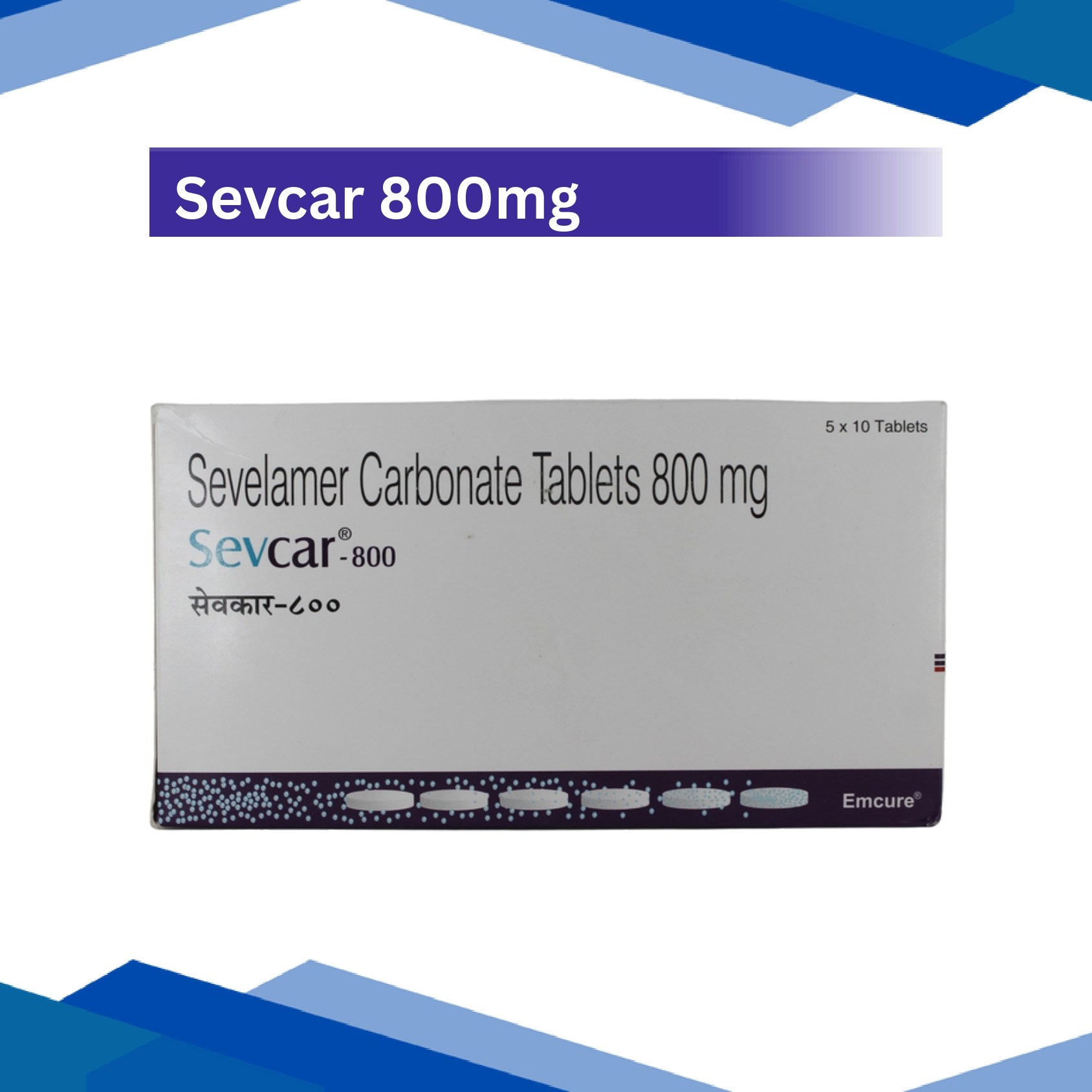 Sevcar 800 mg Tablet is used to manage hyperphosphatemia (high phosphate levels in the blood), especially in patients with chronic kidney disease undergoing dialysis. It contains sevelamer, a phosphate binder that reduces the absorption of phosphate from food. For more details kindly click on Medicine Salts below: