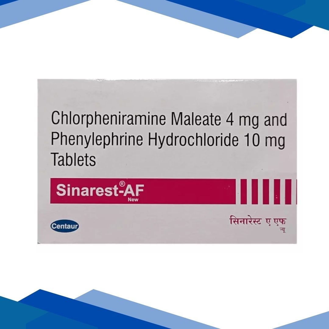 SINAREST AF DELICIOUS SHAHI GULAB FLAVOUR DROPS is used to relieve nasal and sinus congestion, allergic symptoms of the nose or throat due to upper respiratory tract allergies, sinus pain, and headache. Also, it is used adjunctly with antibacterials to manage sinusitis (inflammation of the tissue lining the sinuses), tonsillitis (inflammation of the tonsils), and otitis media (middle ear infection).