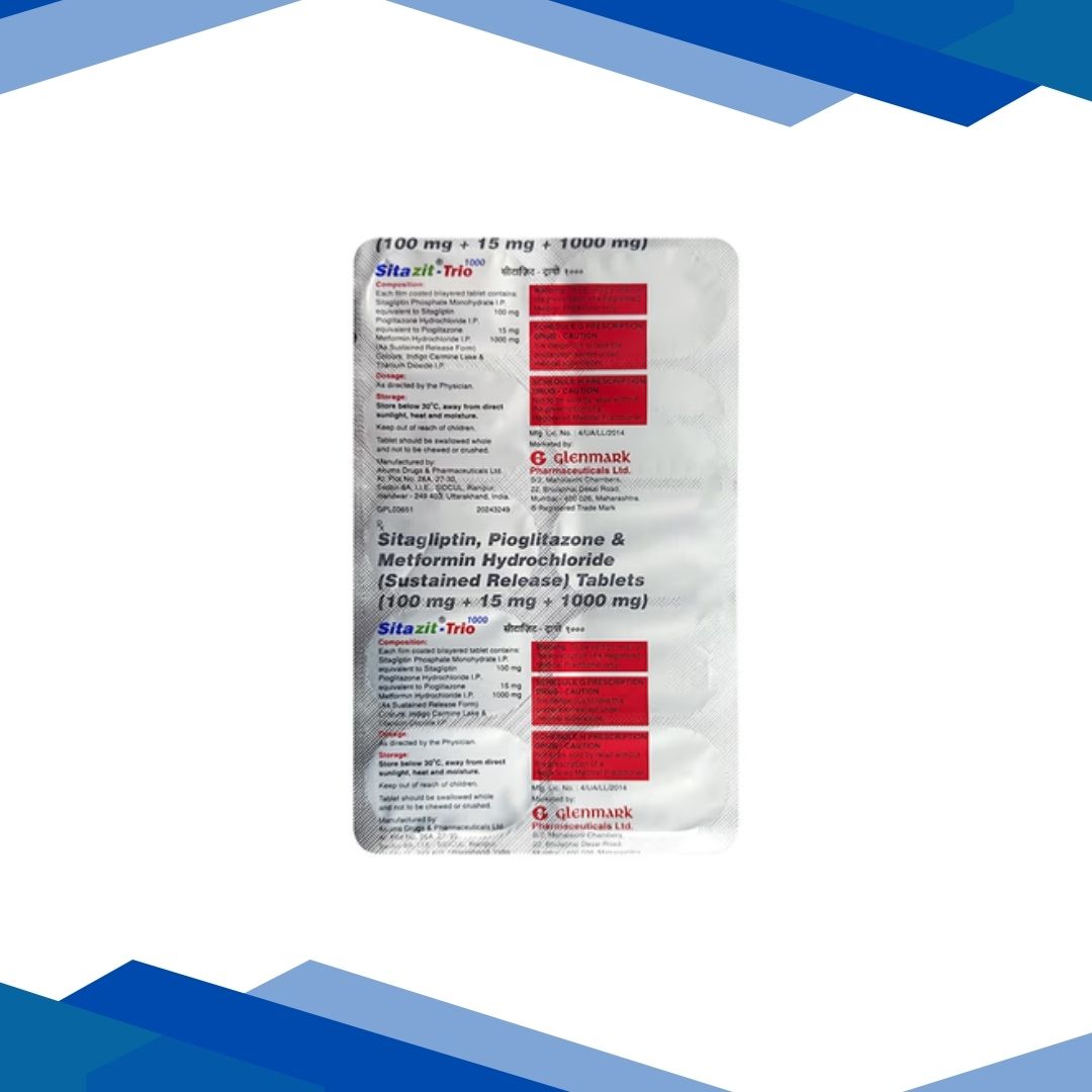 Sitazit-Trio 1000 Tablet SR is indicated as an adjunct to diet and exercise to improve glycemic control in adults with type 2 diabetes. It controls your blood sugar levels and helps prevent serious complications in the future. Your doctor may prescribe it alone or along with other diabetes medicines. For more details kindly click on Medicine Salts below: