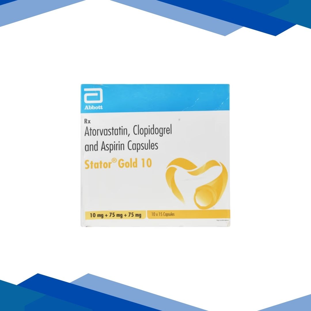 Stator Gold Capsule is a combination medicine used in the prevention of heart attack. It works by preventing clot formation in the blood vessels. It also helps to reduce increased cholesterol and triglyceride levels and promote cardiac health. For more details kindly click on Medicine Salts below:
