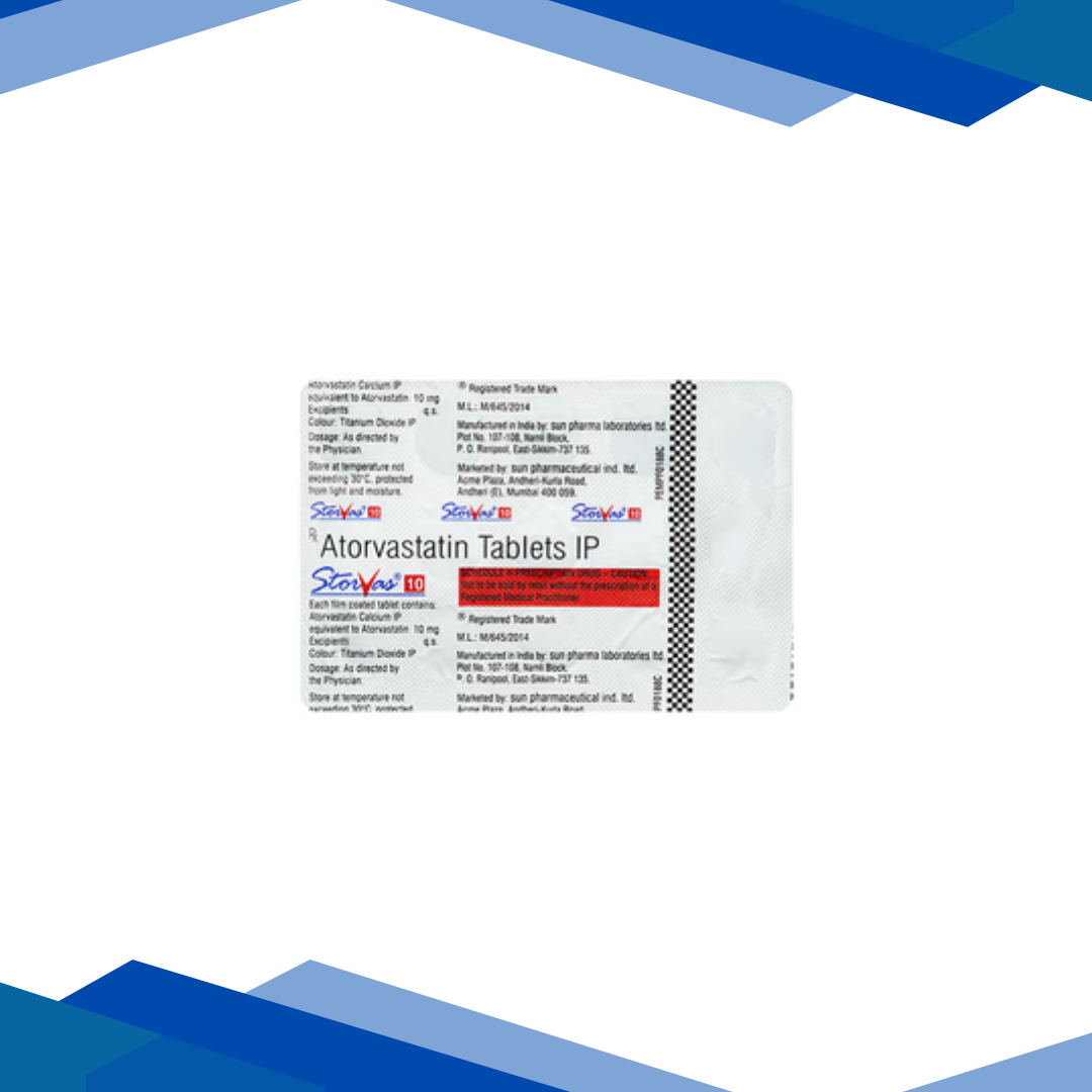 Storvas-10mg tablet helps reduce bad cholesterol and fats in your blood, keeping your heart healthier. It also helps raise good cholesterol levels to maintain a better balance. By controlling cholesterol, it lowers the risk of heart attack and stroke. Doctors usually recommend it along with a healthy diet and regular exercise for best results. For more details kindly click on Medicine Salts below: