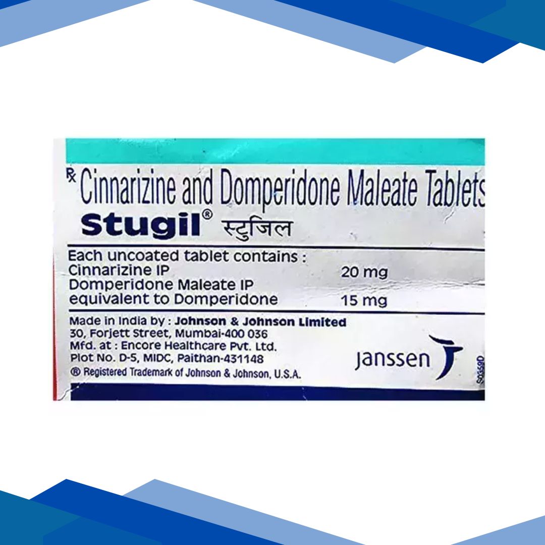 STUGIL TABLET is a combination of Cinnarizine and Domperidone which belongs to the group of medicines called Anti histamines and Anti-emetic agents. It is used to manage vertigo or meniere’s disease, nausea and vomiting due to motion sickness. It is also used for the management of vestibular disorders.