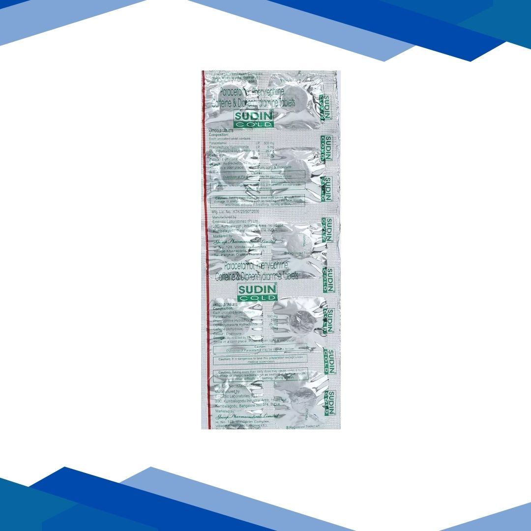 Sudin Cold Tablet 10’s is a prescription cough and cold combination medicine used to temporarily relieve common cold and flu symptoms such as sneezing, runny or stuffy nose, nasal congestion, headache, fever, body aches, and watery eyes by combining pain-relief, decongestant, antihistamine, and stimulant actions to improve overall comfort and ease respiratory discomfort. For more details kindly click on Medicine Salts below: