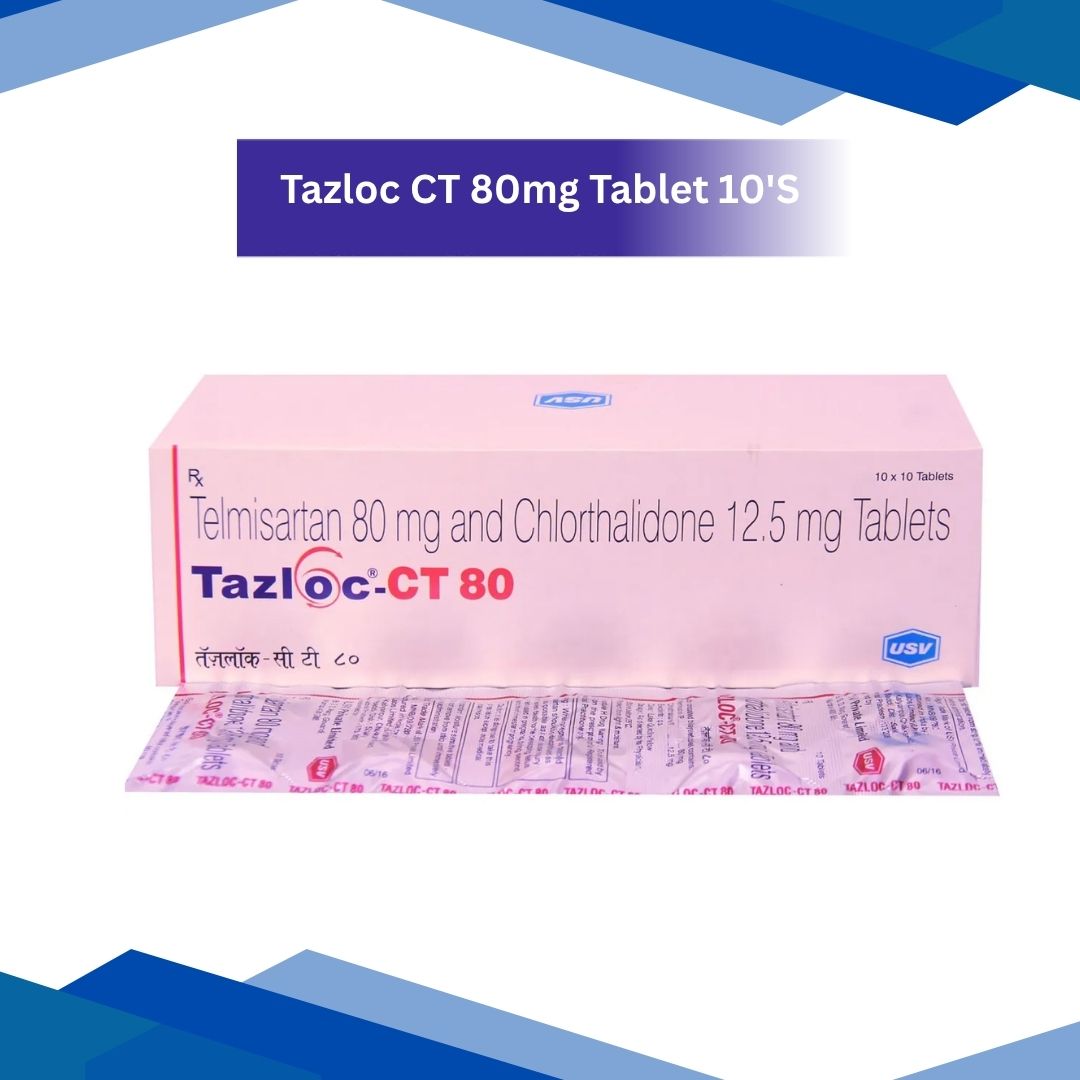 Tazloc CT 80 mg Tablet 10’s is a prescription medication used to manage high blood pressure (hypertension). It combines Telmisartan (80 mg), an angiotensin II receptor blocker that relaxes blood vessels, with Chlorthalidone (12.5 mg), a diuretic that helps eliminate excess sodium and water from the body. Together, they lower blood pressure and reduce the risk of heart-related complications. For more details kindly click on Medicine Salts below: