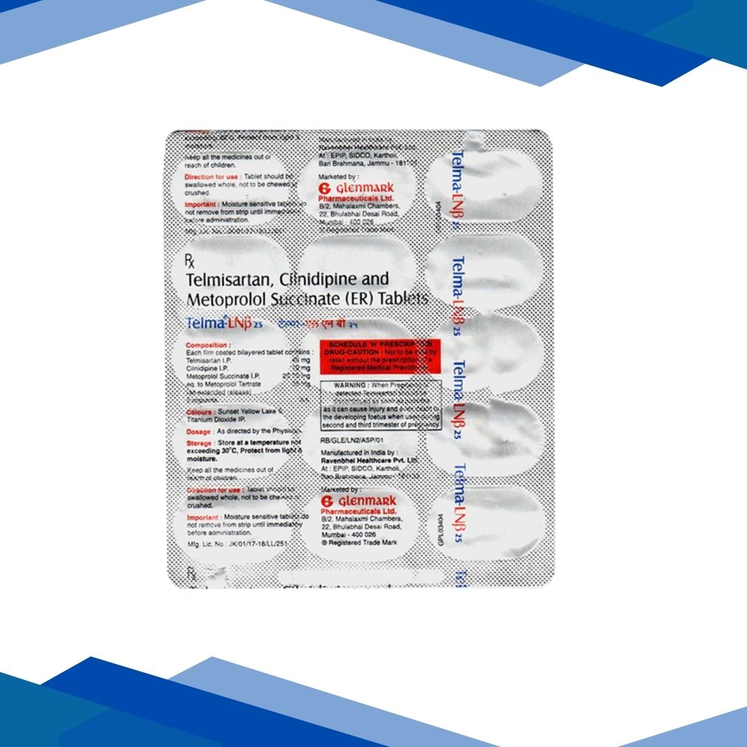 Telma-LNB Tablet ER is a medicine used for the treatment of patients with uncontrolled essential hypertension (high blood pressure) when a single medication is not effective. It helps lower high blood pressure, thus reducing the chances of future cardiovascular events such as heart attack and stroke.