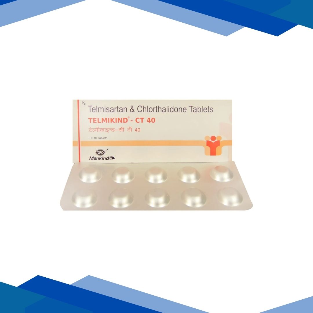 Telmikind CT 40mg Tablet is a combination medicine used to treat high blood pressure by relaxing blood vessels and helping the body eliminate excess salt and fluid, which aids in better blood pressure control and lowers the risk of heart-related complications. For more details kindly click on Medicine Salts below: