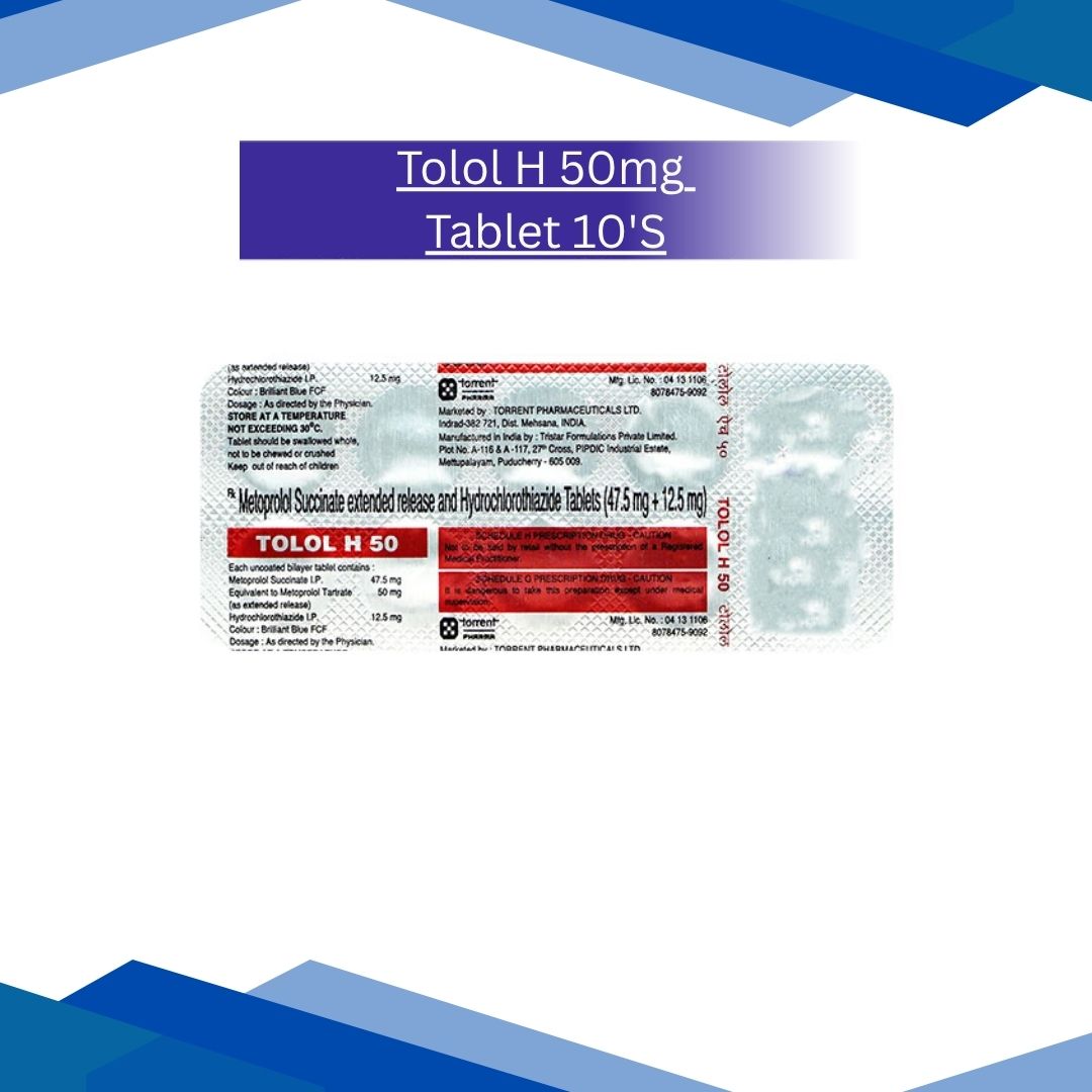 Tolol H 50 mg Tablet 10’s is a prescription medication used to treat high blood pressure by combining two agents that reduce heart workload and help the body eliminate excess fluid. For more details kindly click on Medicine Salts below: