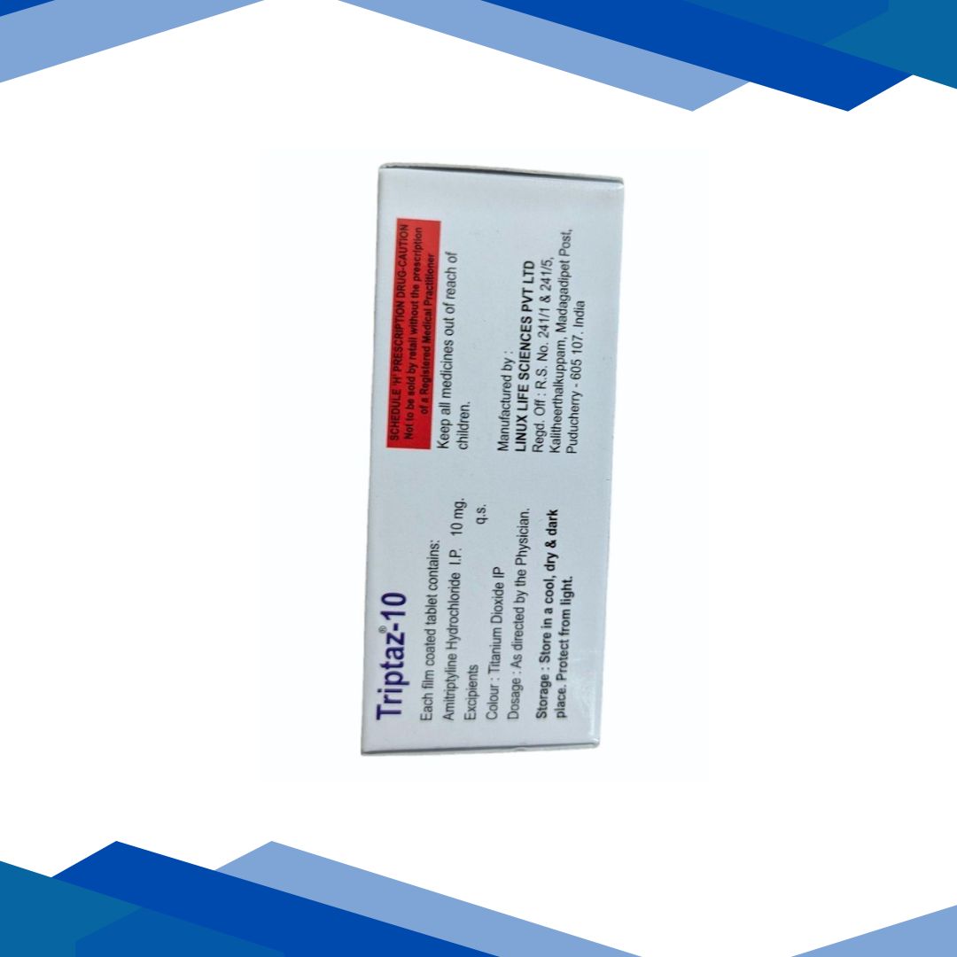 Triptaz 10 mg Tablet 10’s is a prescription antidepressant medicine used to treat depression, neuropathic pain, chronic tension‑type headaches and migraine and may also be prescribed for night bed‑wetting in children aged 6 years and above when directed by a doctor. It works by increasing levels of certain natural brain chemicals (serotonin and norepinephrine) to improve mood and relieve symptoms. For more details kindly click on Medicine Salts below:
