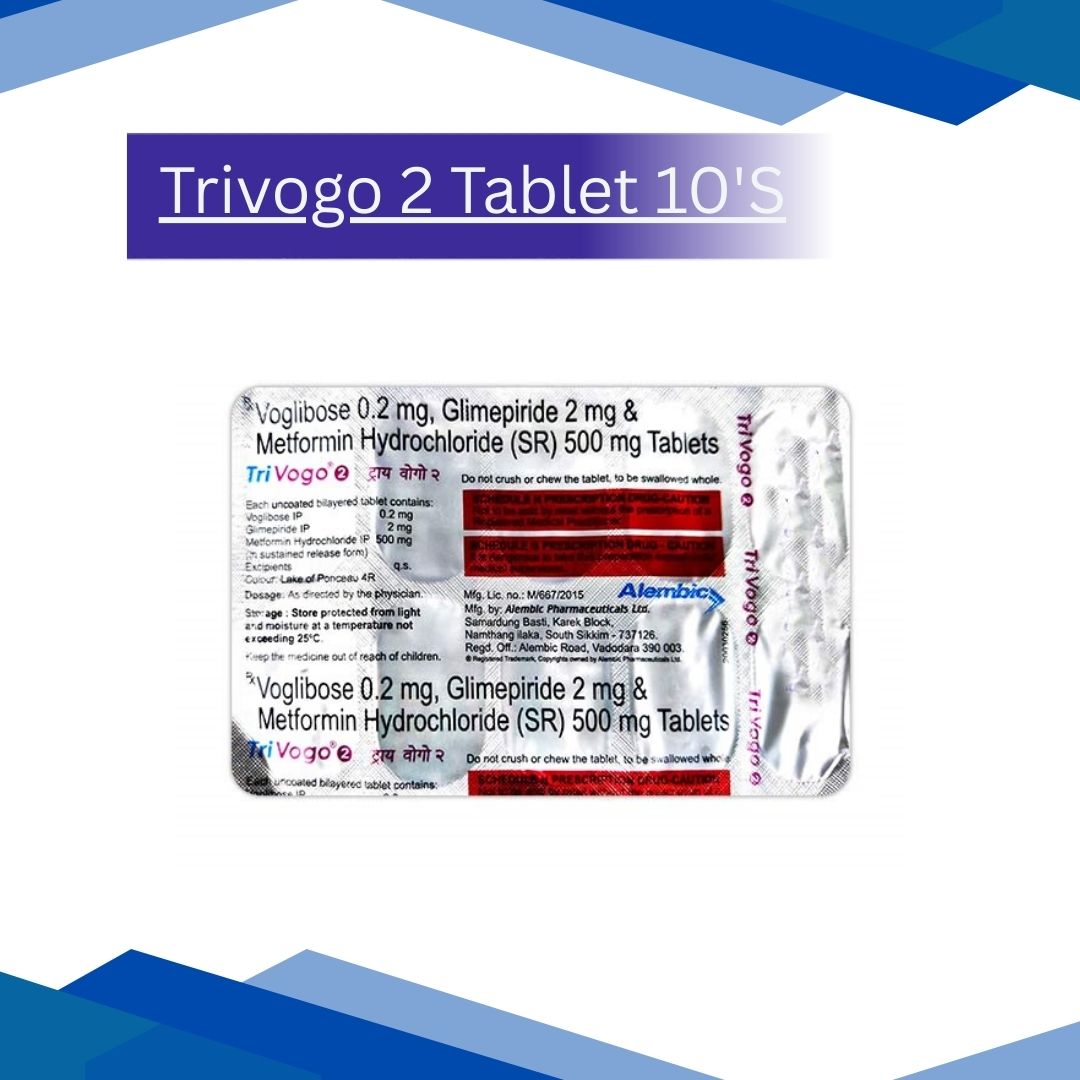 Trivogo 2 Tablet 10’S is an anti-diabetic medicine used to manage blood sugar in type 2 diabetes by boosting insulin release and slowing carbohydrate absorption. For more details kindly click on Medicine Salts below: