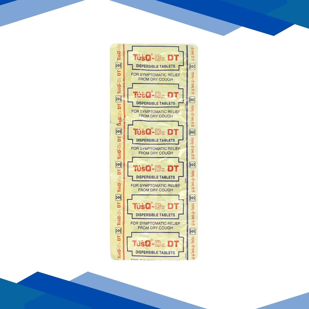 TusQ-DX DT Tablet is a medicine used in the treatment of the common cold and cough. It can provide quick relief from cough and common cold symptoms like runny nose, stuffy nose, sneezing, watery eyes, and congestion or stuffiness. For more details kindly click on medicine salt below: