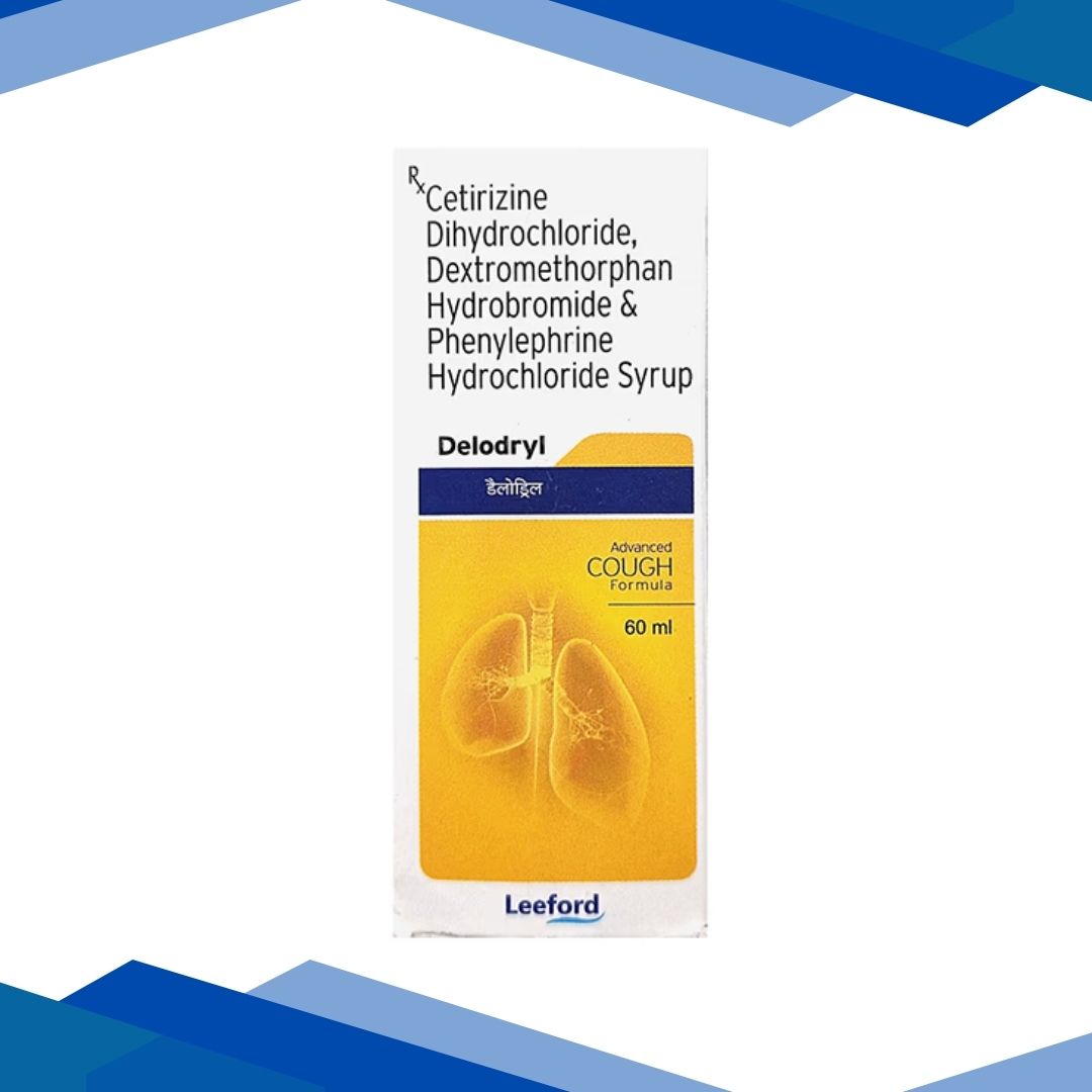 DELODRYL SYRUP is used to manage chest congestion, common cold, nasal congestion, sneezing, and itching. It is also used for symptomatic relief of dry, unproductive cough due to post-nasal drip, allergic vasomotor rhinitis, allergic pharyngitis, laryngitis, sinusitis, and allergic cough following URTI and surgery
