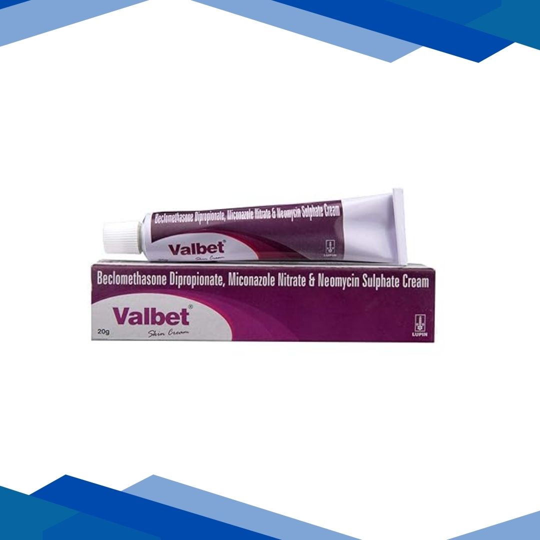 VALBET SKIN CREAM is a combination of Beclomethasone dipropionate, Miconazole and Neomycin which belongs to a group of medicines called Corticosteroids, Antifungals and Aminoglycoside antibiotics, respectively. VALBET SKIN CREAM is used to manage, control, manage & improve the conditions and symptoms of runny nose, hay fever/allergic rhinitis (type of nose inflammation), ulcerative colitis (inflammatory bowel disease), asthma, hepatic coma (nervous system disorder that occurs due to severe liver disease), wound, ulcers, external ear infections, eye infections, diarrhea, napkin rash, paronychia (nail inflammation), bacterial infections and fungal infections such as vulvovaginal candidiasis and vaginal yeast infections.