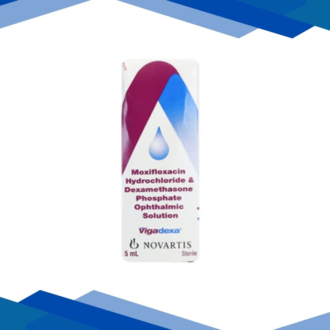 VIGADEXA OPHTHALMIC SOLUTION is a combination of Dexamethasone and Moxifloxacin which belongs to the group of medicines called Corticosteroids and Antibiotics respectively. It is used to manage eye inflammation and infection.